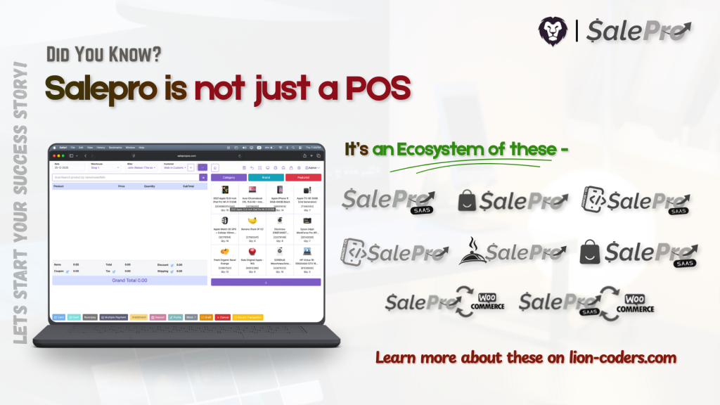 SalePro SaaS is a multi-tenant SaaS version of SalePro, built for entrepreneurs, agencies, and companies who want to offer POS as a subscription service.