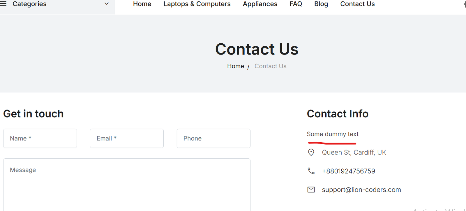 if you want to put some texts on the contact us page, you can type it in the text editor and your text will appear on the contact page right above the contact information