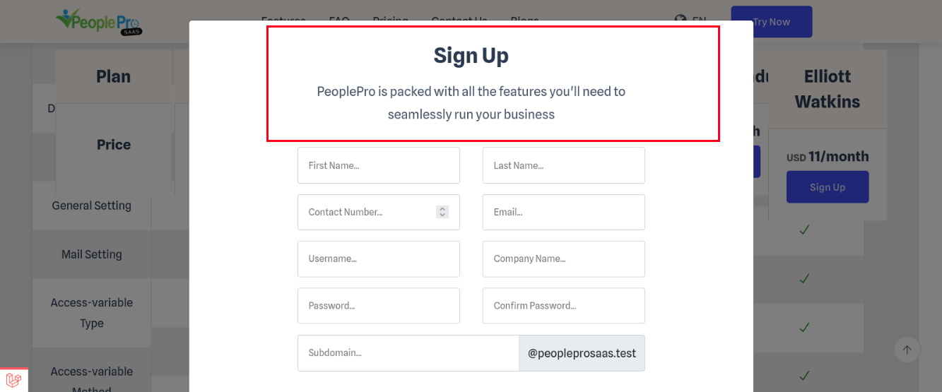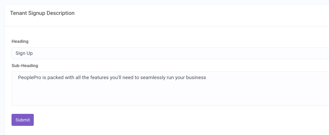 CMS –> Tenant Signup Description