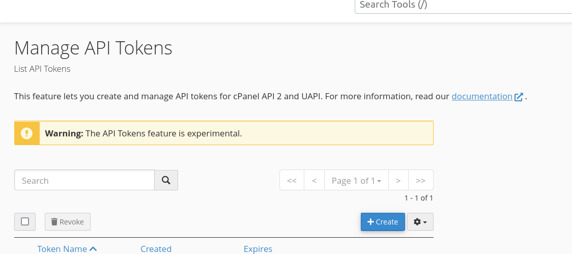 - Search or goto Manage API Tokens