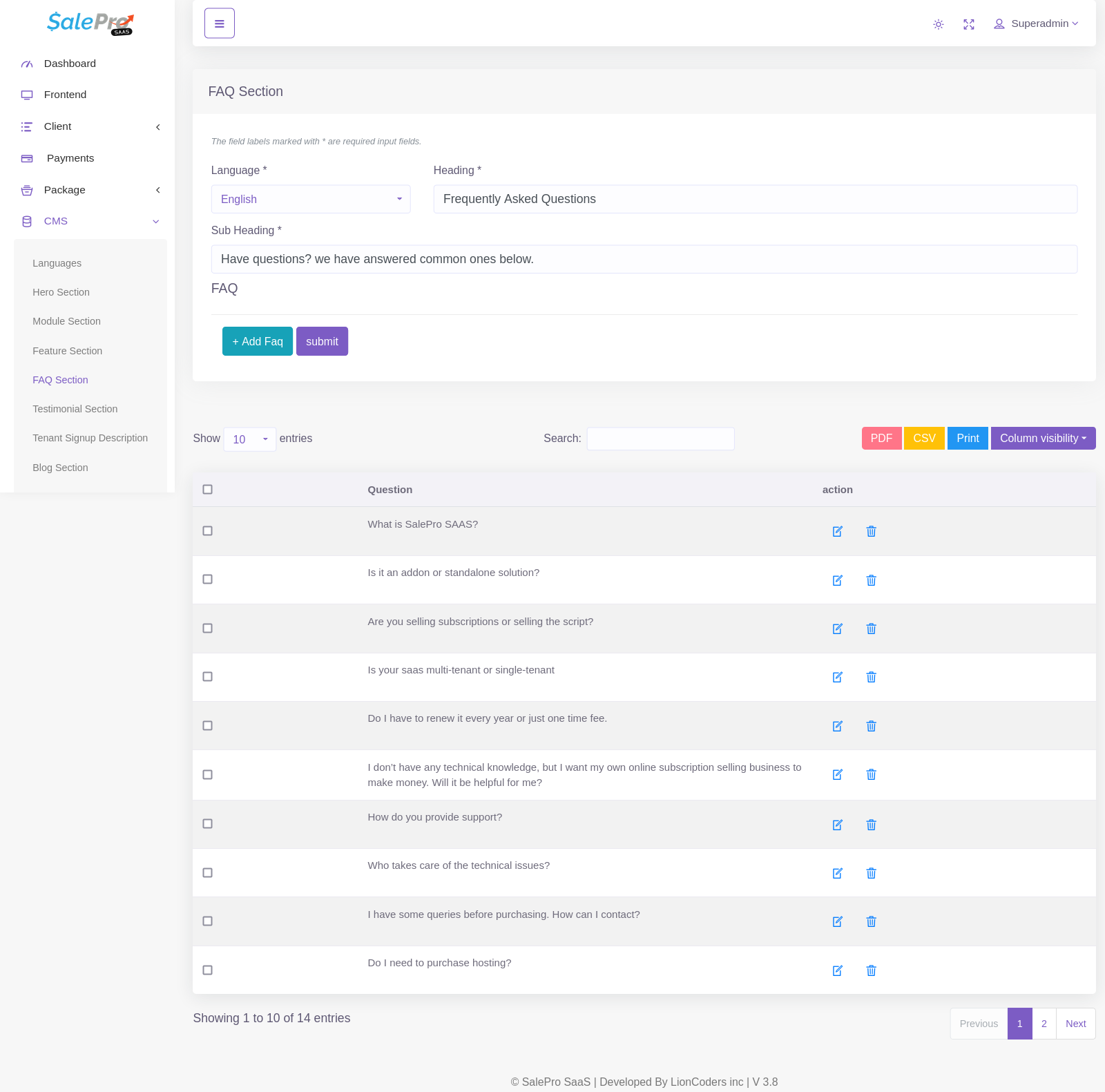 You can Manage Heading, Sub-Heading, Question, Answer
