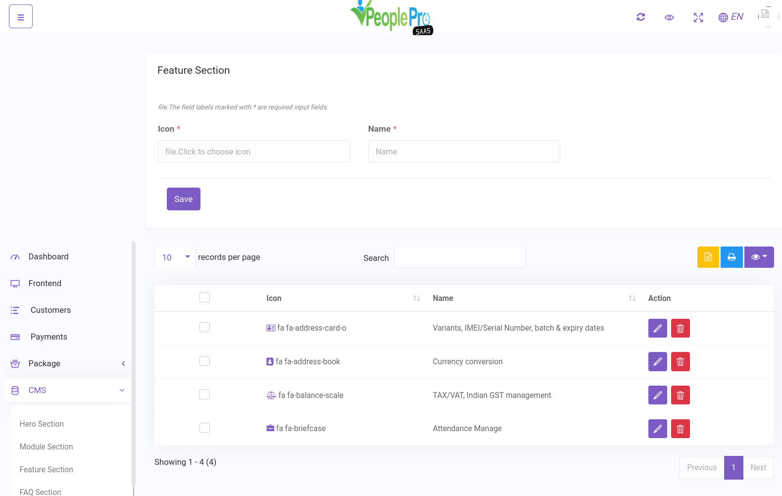 CMS –> Feature Section