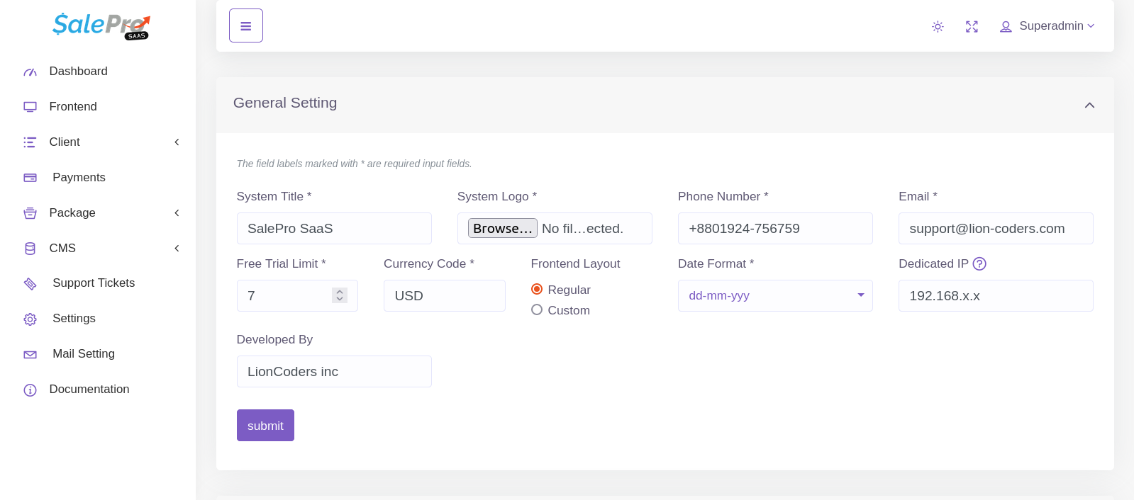 - Login URL :: https://your_domain_url/superadmin-login