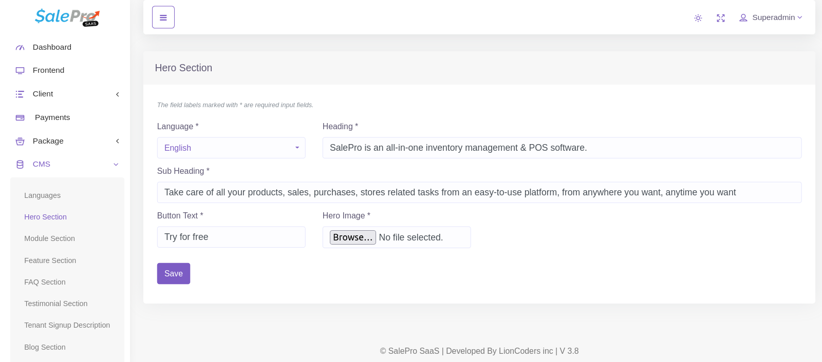 CMS –> Hero Section.