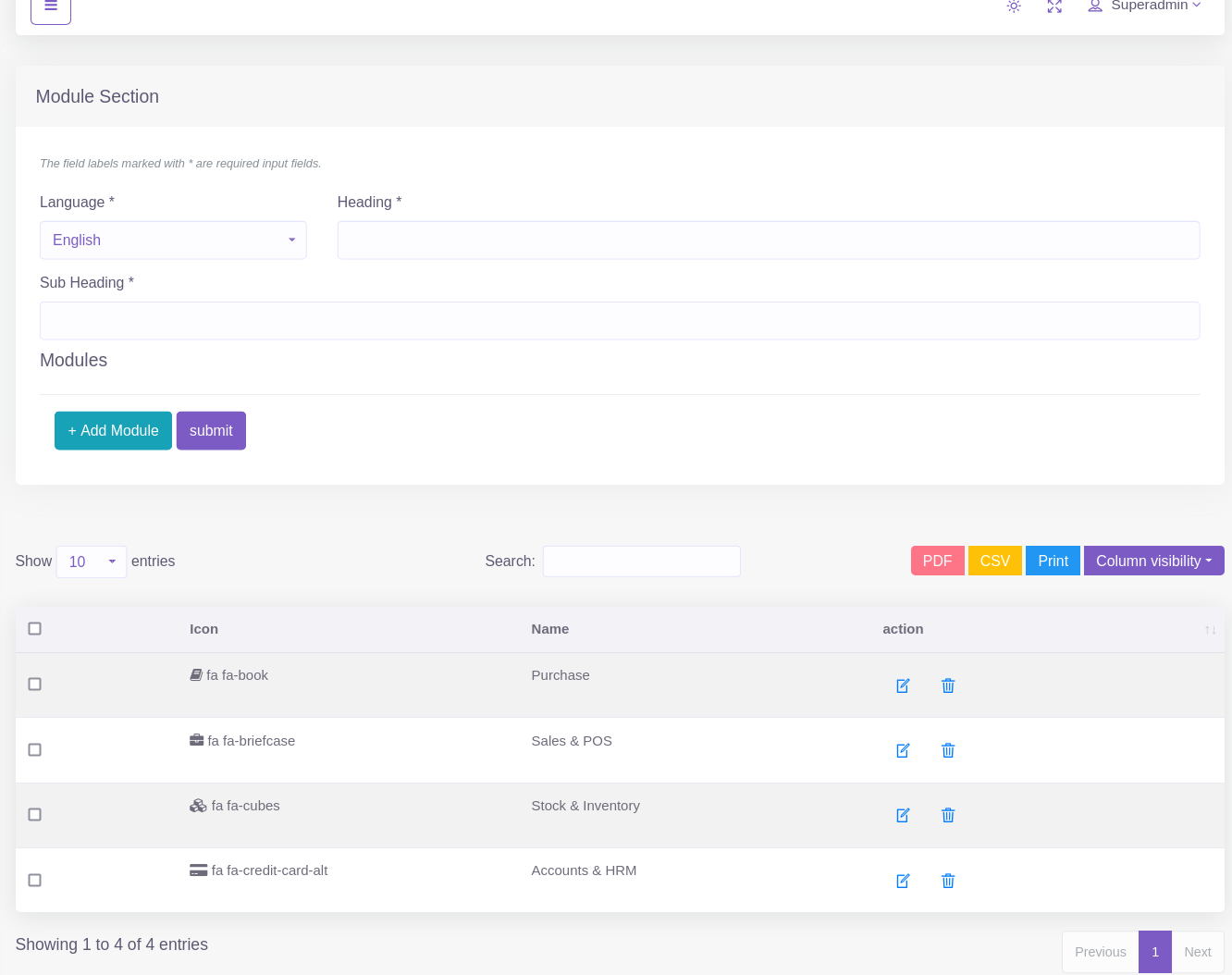 CMS –> Module Section.