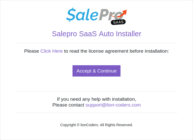 Please make sure your configure your web hosting’s settings, so that it shows hidden files and folders. This is to ensure that if you copy/move the contents from the unzipped folder to any other location, you copy all the files including ‘.htaccess’, ‘.env’ files which are necessary for the proper functioning of the software. Now you can access the folder where you have SalePro Saas from your browser.