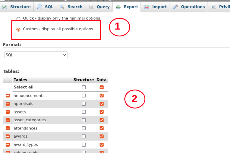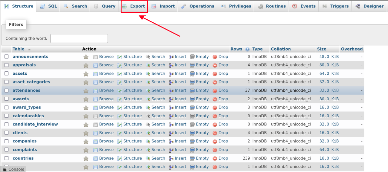 (iii) Then back to the SalePro database and click on Export