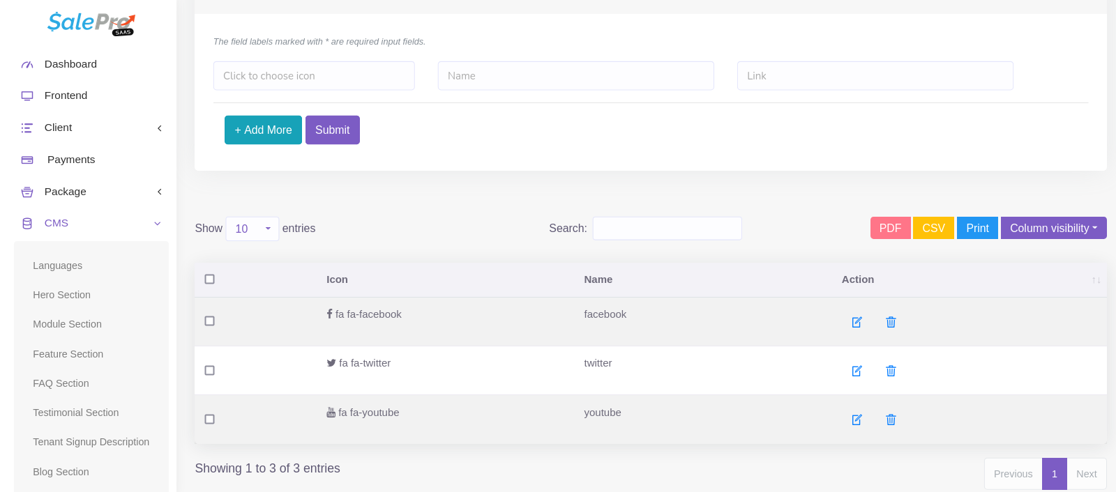 CMS –> Social Section