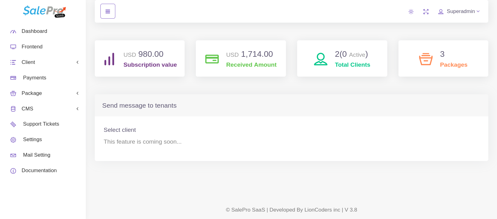The Support Ticket System in SalePro SaaS allows tenants (clients) to communicate directly with the Super Admin for any kind of issue, question, or request.
