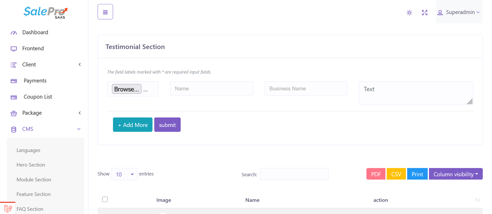 CMS –> Testimonial Section