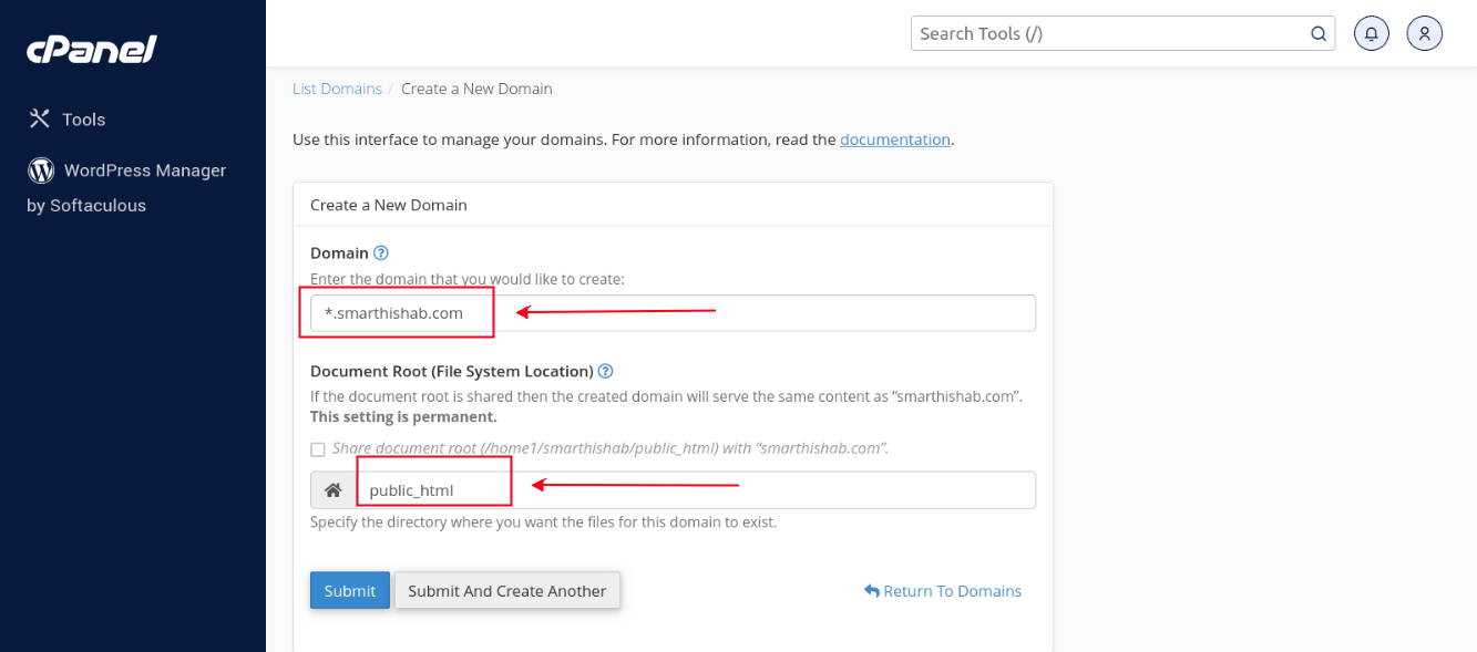 For using the app, you need to create a Wild Card Sub Domain. Follow the instruction –