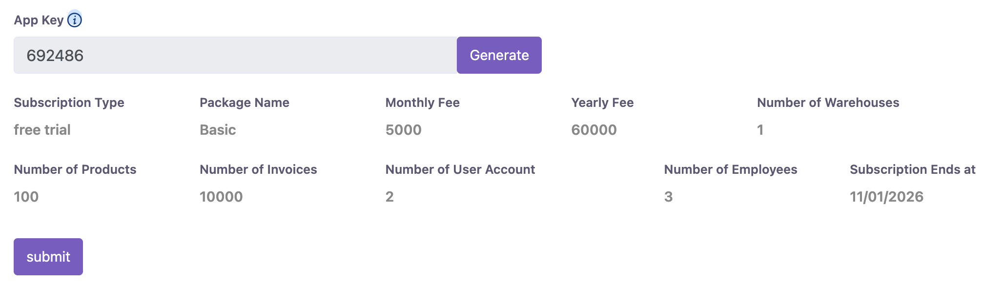 You can set your own POS settings from this module. You can set default customer, biller, warehouse and how many Featured products will be displayed in the POS module. You have to set your Stripe public and private key for Credit Card Payment. To implement payment with Paypal you have to buy live api from Paypal. You will also need to fillup the following information.